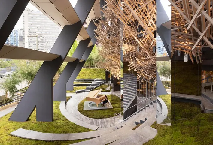 “Chúng tôi nghĩ rằng kiến trúc nên yếu đuối theo một cách nào đó,” Kengo Kuma từng chia sẻ. Ông muốn tạo ra những công trình không áp đặt lên thiên nhiên mà hòa quyện vào cảnh quan, trở thành một phần không thể thiếu của môi trường xung quanh.
