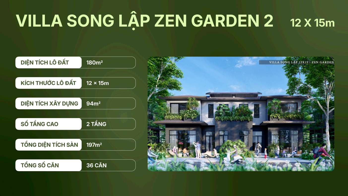 VILLA SONG LẬP ZEN GARDEN 2 – 12 X 15m