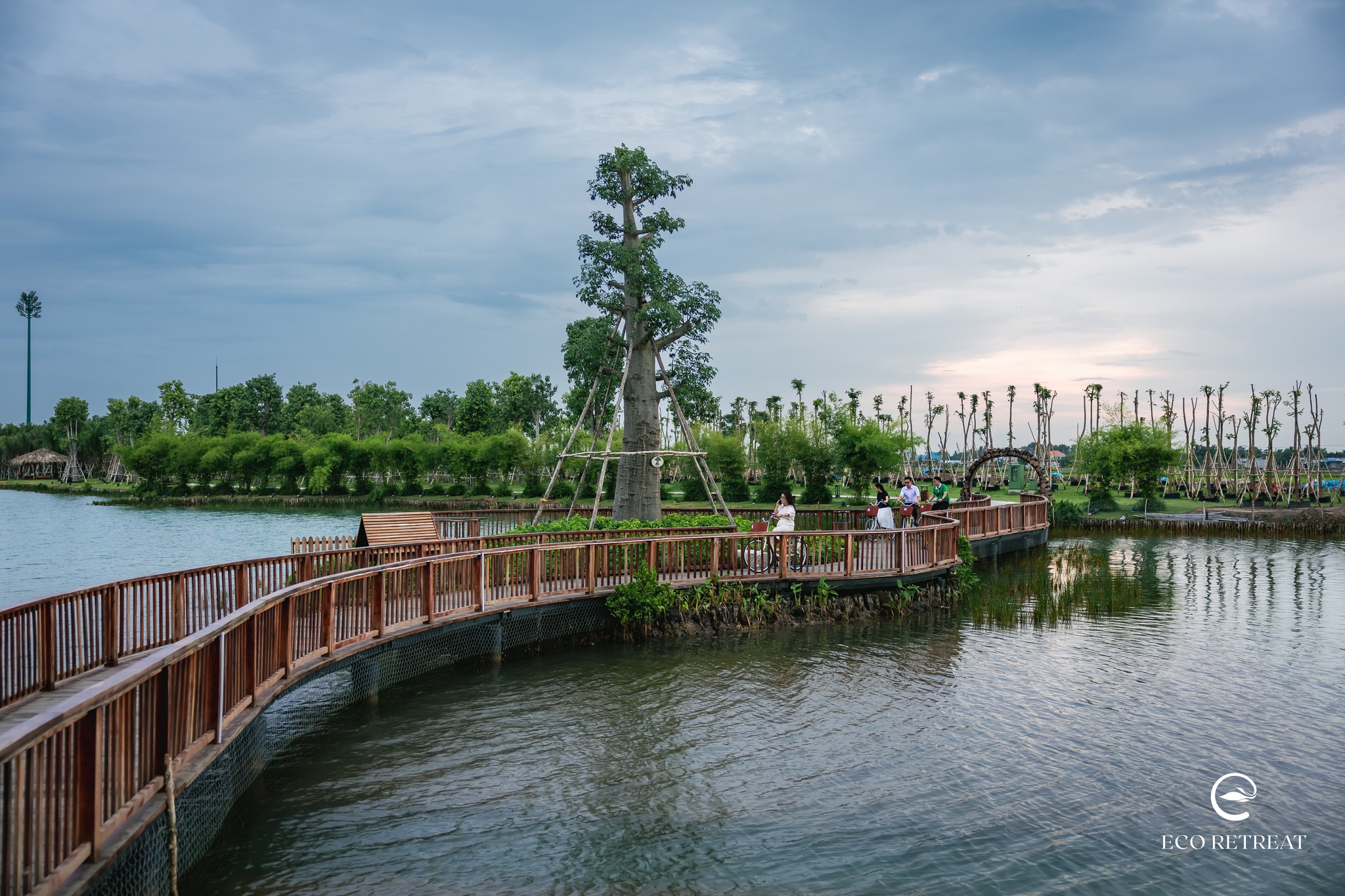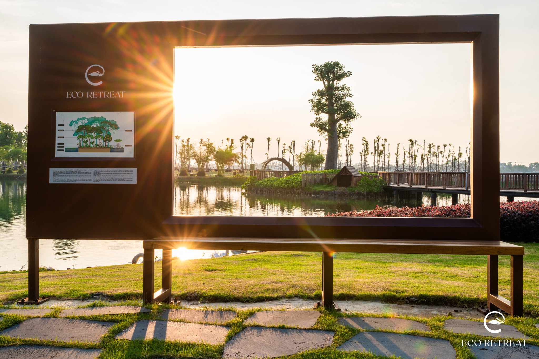 Hiệu quả cộng hưởng của mặt nước – đai rừng giúp nhiệt độ bề mặt giảm đáng kể so với khu vực bê tông hóa dày đặc, từ đó hình thành vi khí hậu trong lành đặc trưng của Retreat Forest.