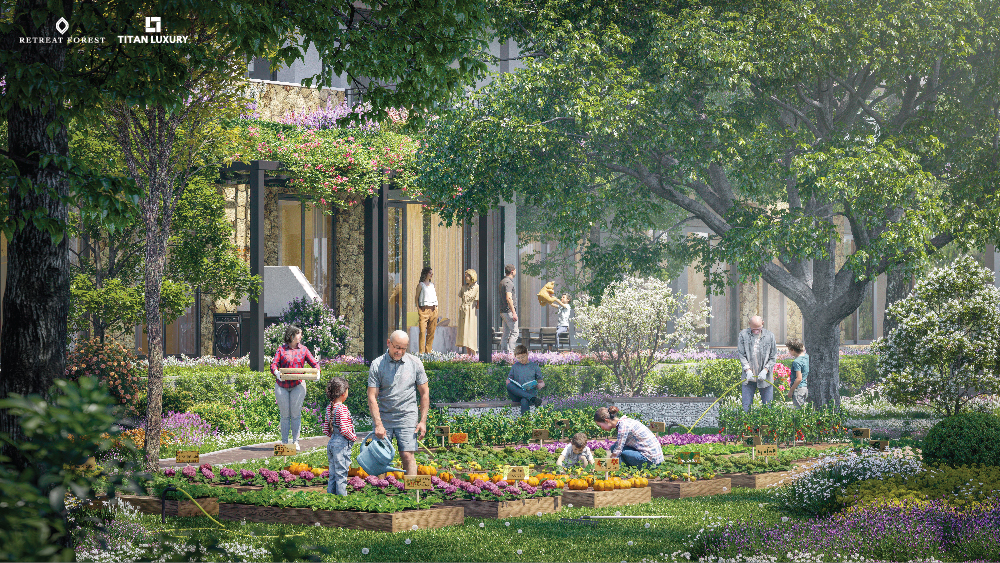 Không gian xanh của Retreat Forest được thiết kế thành 24 khu vườn khác nhau và mỗi cụm vườn mang một cảm xúc riêng: góc đọc sách, vườn hương, vườn lá, vườn âm thanh nước, lối đi thiền, sân chơi thiên nhiên cho trẻ… 24 khu vườn ở Retreat Forest sẽ là suối nguồn của hàng loạt các trải nghiệm kết nối sâu sắc của gia đình, tình thân, bằng hữu, được gieo hạt, vun trồng, bồi tụ mỗi ngày, để hành trình sống trở nên trọn vẹn yêu thương, thắm tình gắn kết.