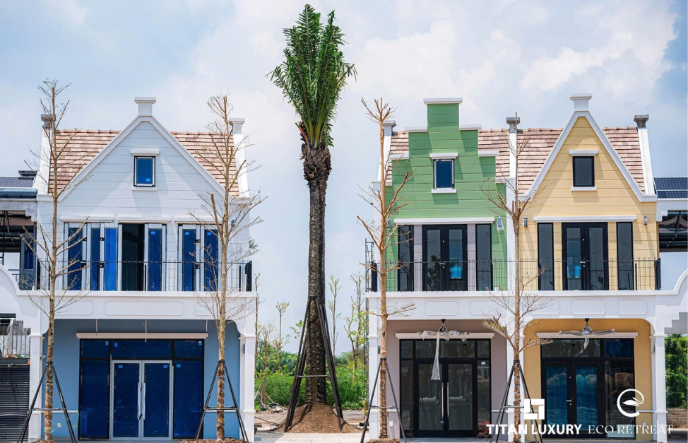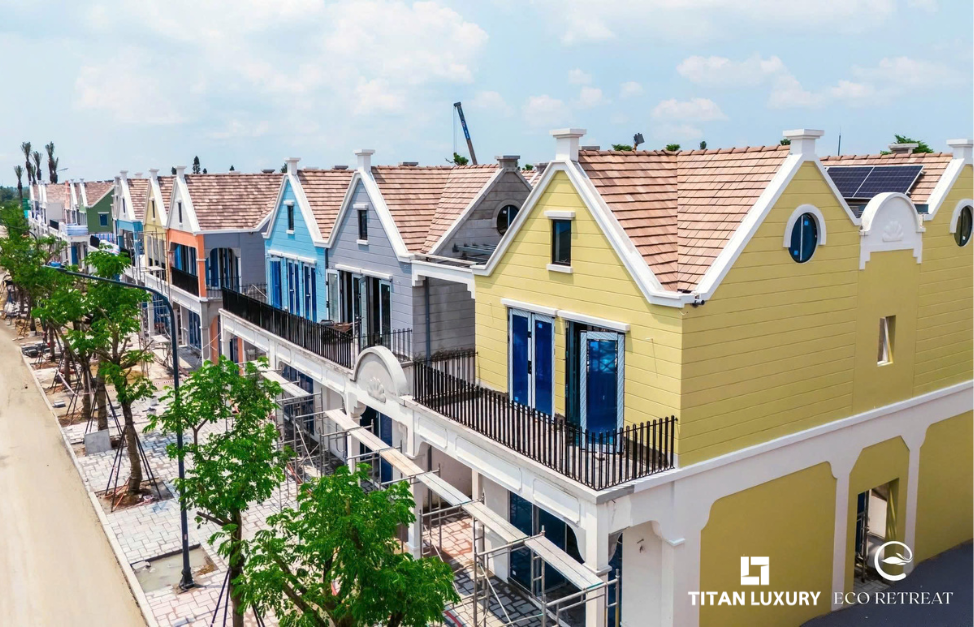 Đến tháng 10/2025, tiến độ Eco Bazaar – khu phố thương mại và ẩm thực trung tâm của Eco Retreat Long An – đã bước vào giai đoạn hoàn thiện cuối cùng. Toàn bộ mặt ngoài các dãy nhà thương mại đã được thi công cơ bản, đồng bộ theo phong cách kiến trúc hiện đại tạo nên diện mạo thanh lịch và tinh tế như một góc phố châu Âu thu nhỏ giữa thiên nhiên xanh mát.