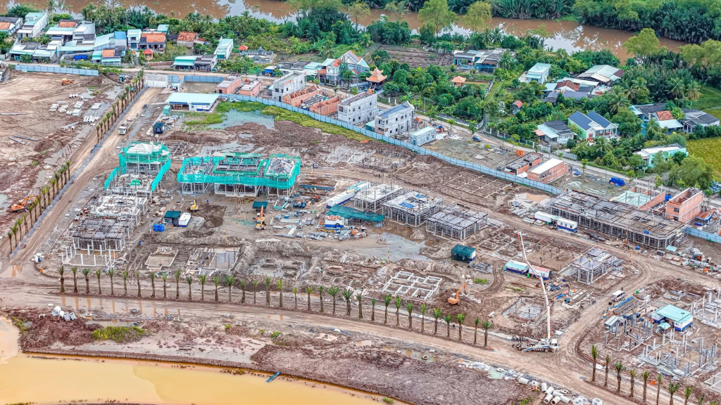 Tiến độ toàn dự án Eco Retreat hiện đang được triển khai đúng theo kế hoạch đề ra, với từng hạng mục thi công đều được theo dõi và kiểm soát chặt chẽ bởi đội ngũ kỹ sư, chuyên gia và đơn vị giám sát độc lập. Mọi công đoạn đều tuân thủ nghiêm ngặt các tiêu chuẩn kỹ thuật, đảm bảo chất lượng công trình, tính thẩm mỹ trong thiết kế và độ bền vững lâu dài của toàn khu.